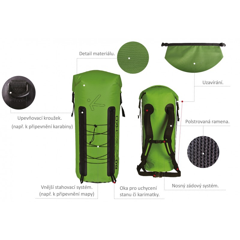 TREK Backpack is a combination of a dry bag and a backpack made of durable nylon fabric with TPU coating.