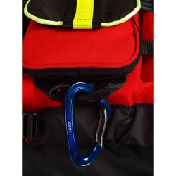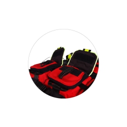 High flotation life vest with additional storage and attachments designed for rescue scenarios.